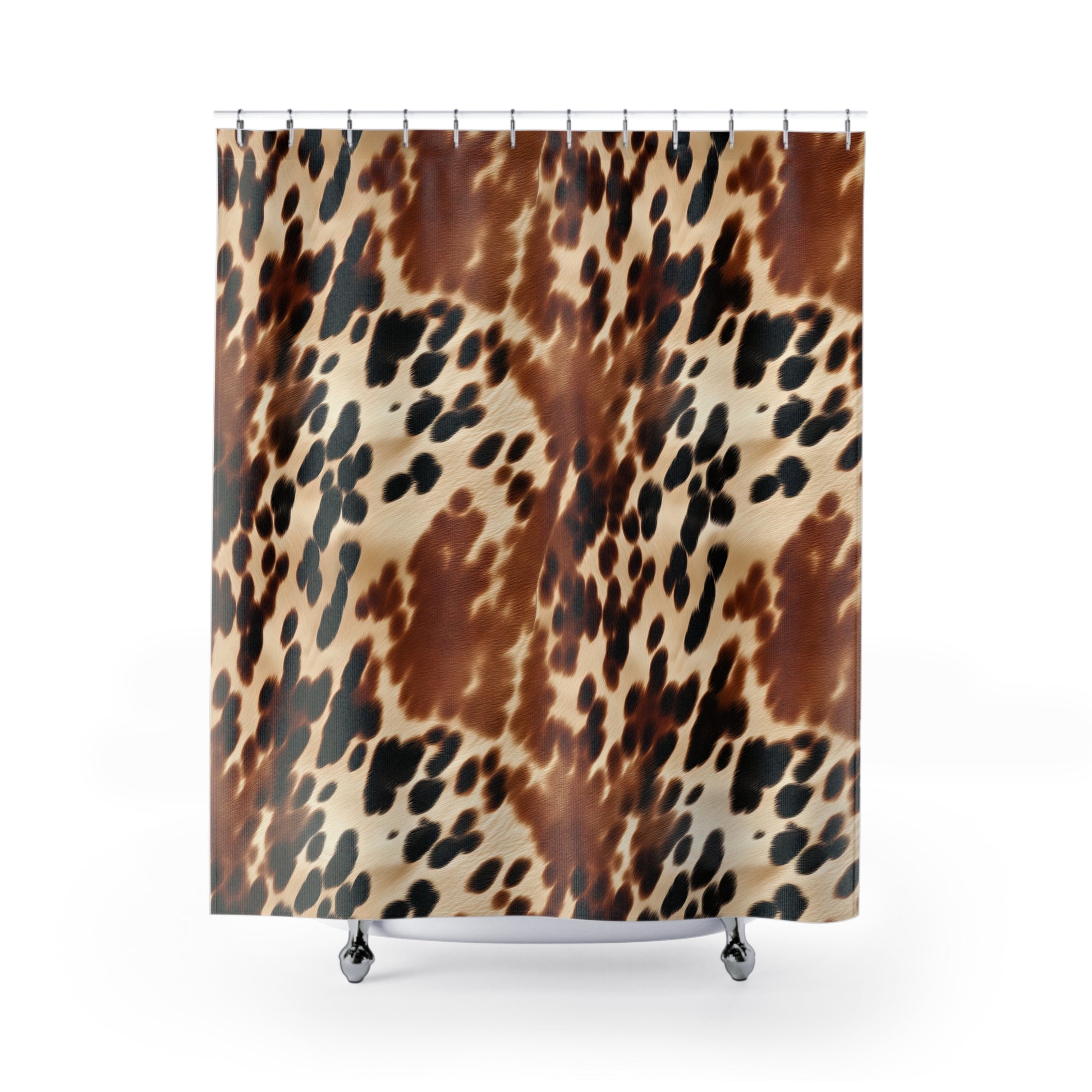 Bring warmth and a touch of wild elegance to your bathroom with this animal-print shower curtain. The rich caramel and deep black splotches flow across a creamy background like a watercolor hide, creating movement and texture that reads luxe without being loud. It hangs with 12 buttonholes for easy placement on standard hooks (hooks not included), and the fast-drying polyester keeps the pattern vivid even with daily use. Hang it on a cozy weekend when you’re resetting your space, or swap it in for guests to lift a neutral bathroom into something unexpectedly stylish.
