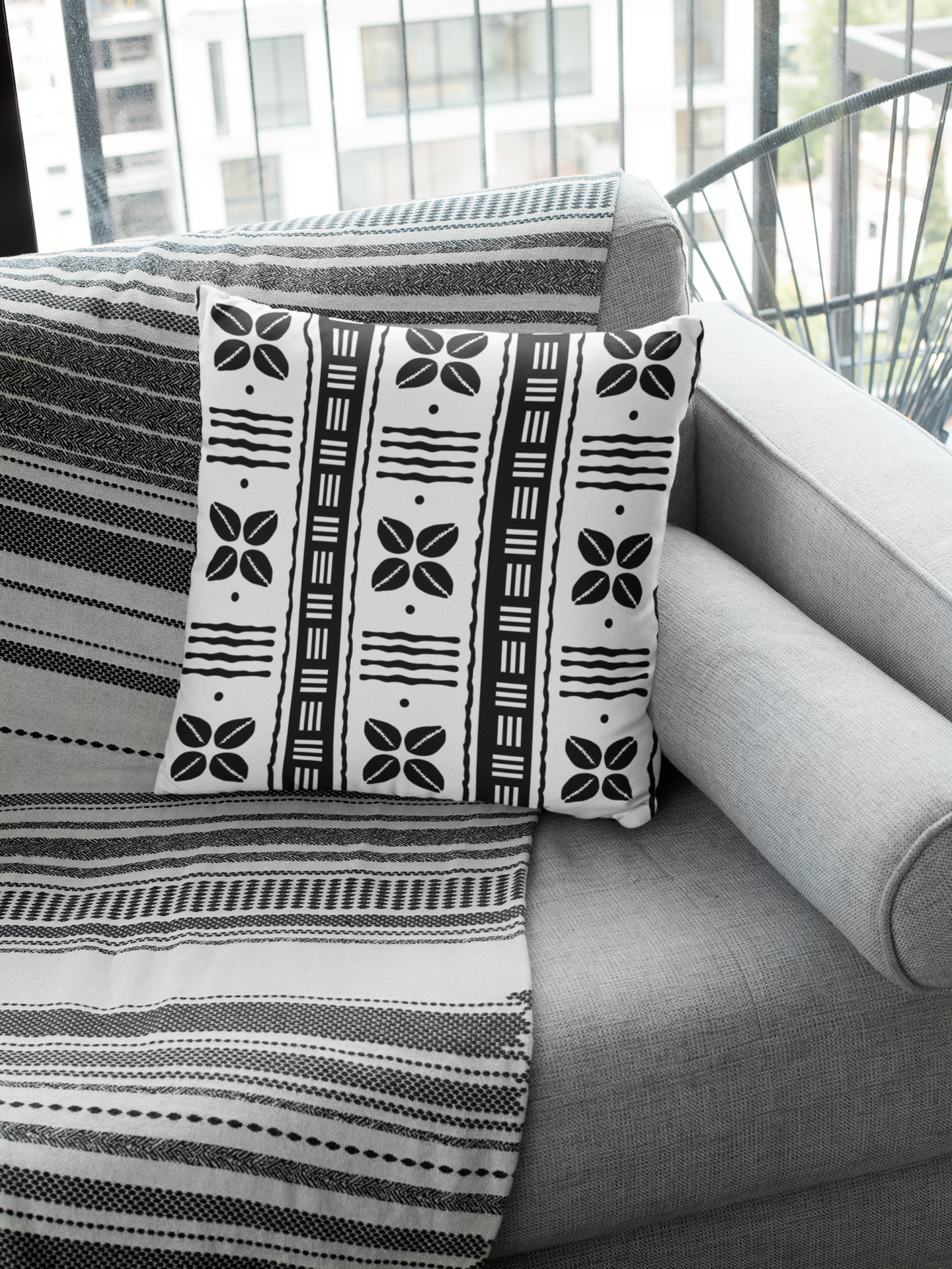 This Pillowcase features a unique design of White African Shells and Bogolan Mudcloth, giving off a bohemian and earthy vibe. Perfect for those looking to add a touch of cultural style to their home decor. Relevant for those interested in African-themed decor, boho style, or natural elements. Ideal for holidays such as Earth Day or World Cultural Day. Product features - 100% Spun polyester for shape retention and no wrinkles - Beige plastic zipper with metal head for a stylish finish - Double sided print for versatile styling options - Concealed zipper for a seamless look - Pre-constructed item with size variance of +/- 0.5"