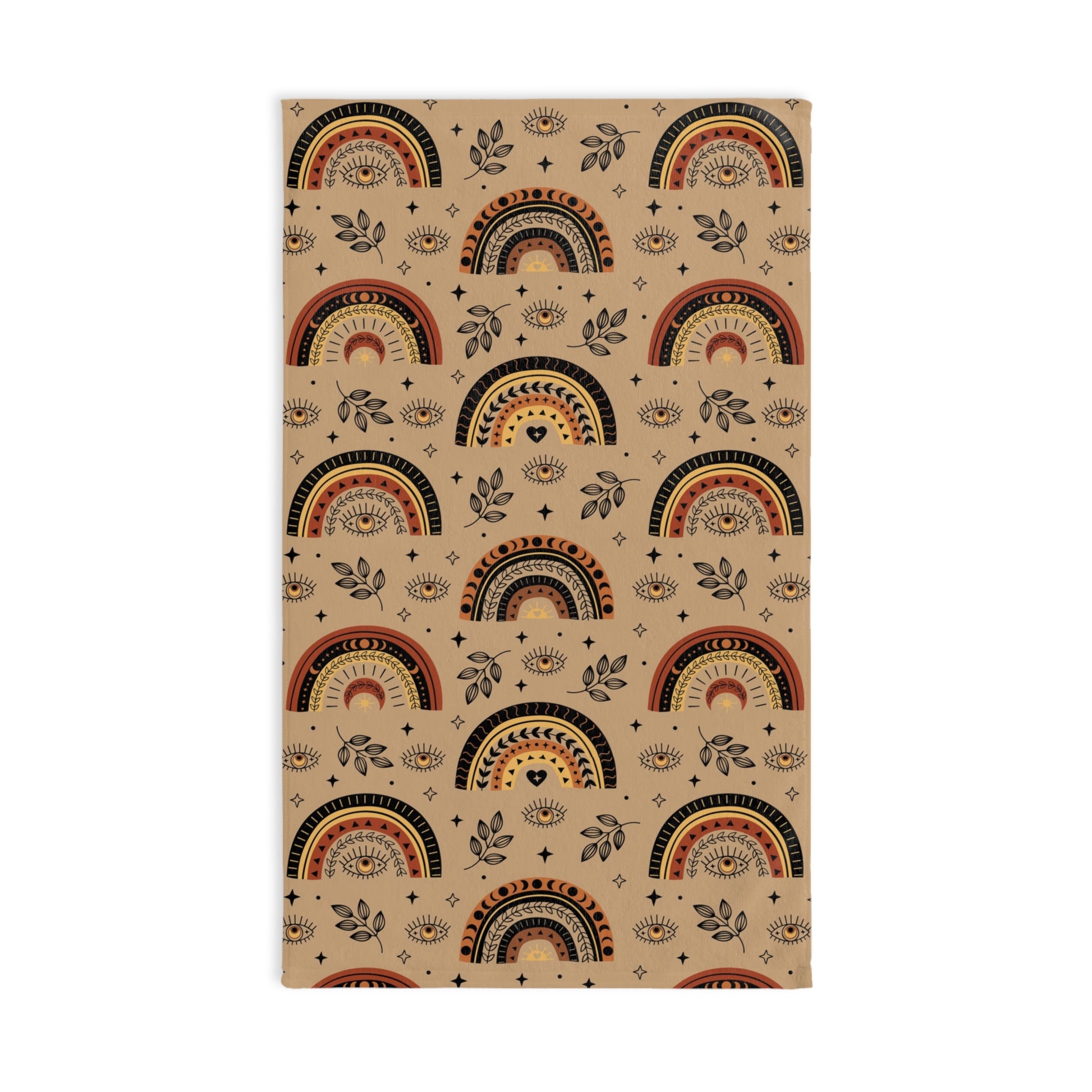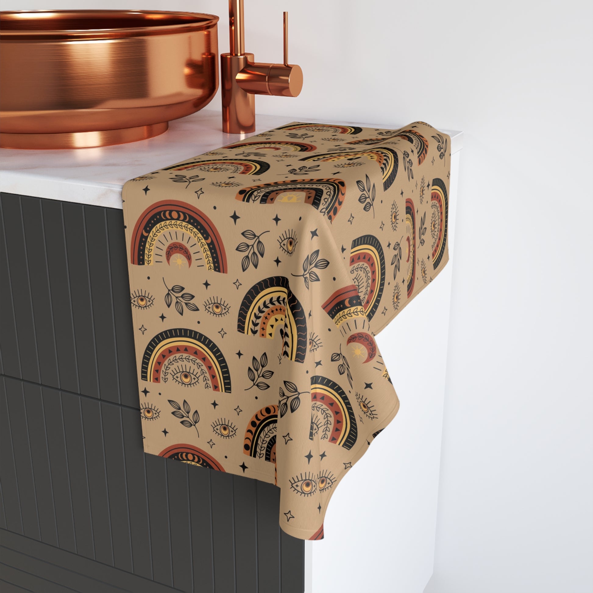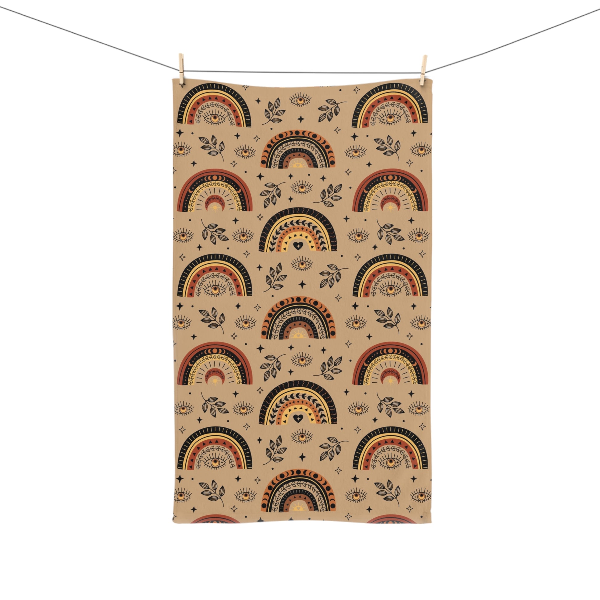This Celestial Rainbow Hand Towel is perfect for adding a boho touch to your bathroom decor. The vibrant colors and Evil Eye design create a mystical atmosphere, making it a great addition for those who love all things celestial. Perfect for those who enjoy spiritual and bohemian vibes, this hand towel is ideal for gifting during birthdays, housewarmings, or as a special treat for yourself.